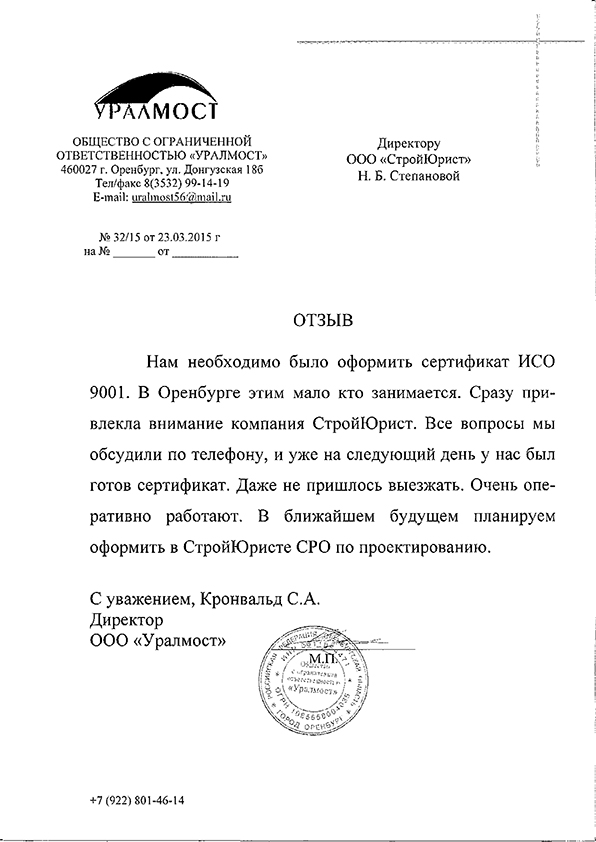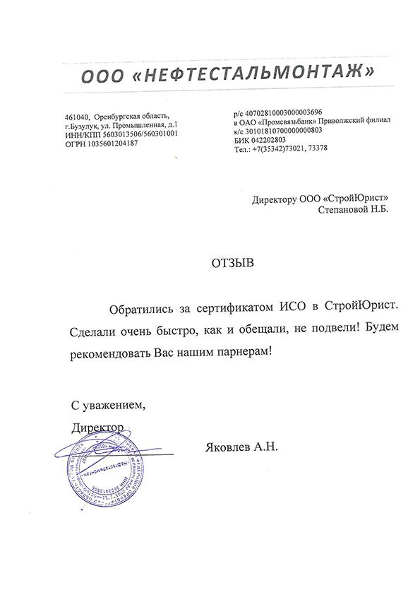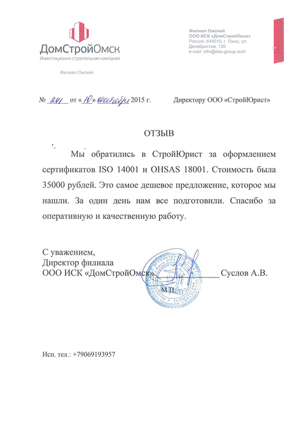 Отзывы клиентов "СтройЮрист" по ISO в Комсомольске-на-Амуре