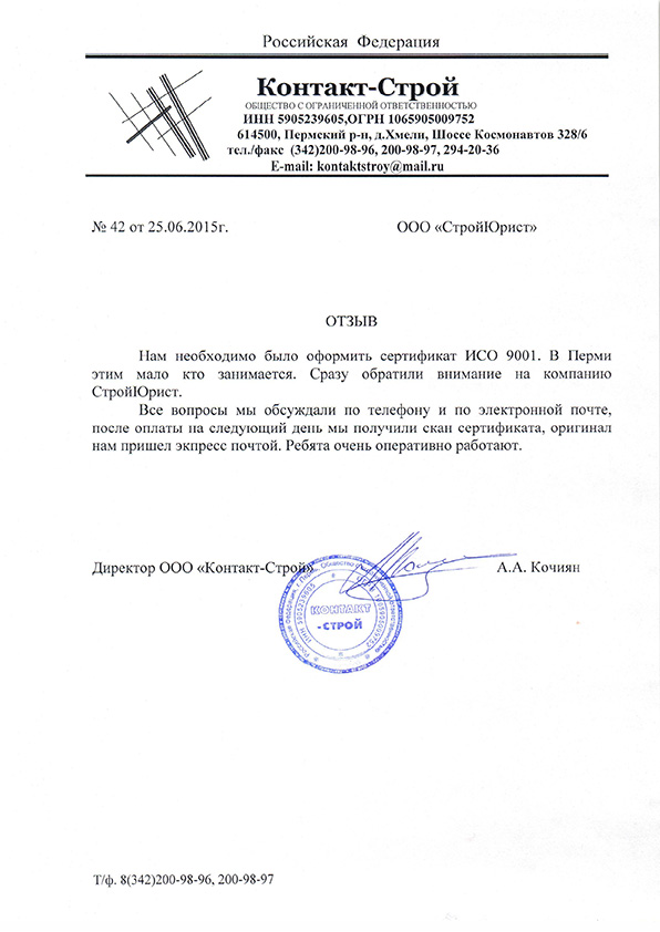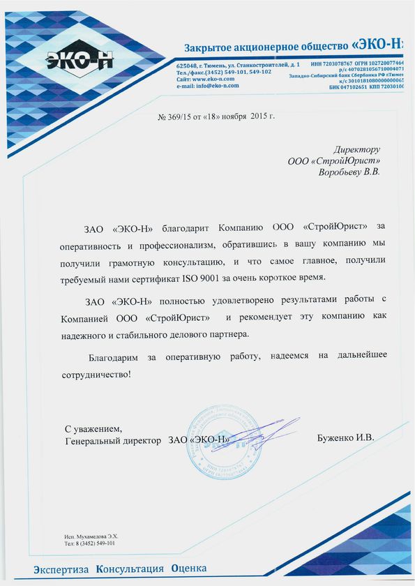 Отзывы клиентов "СтройЮрист" по ISO в Комсомольске-на-Амуре