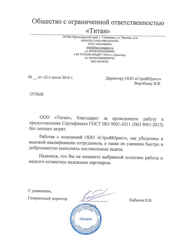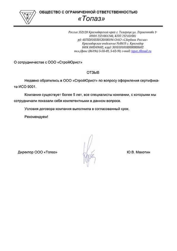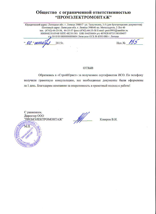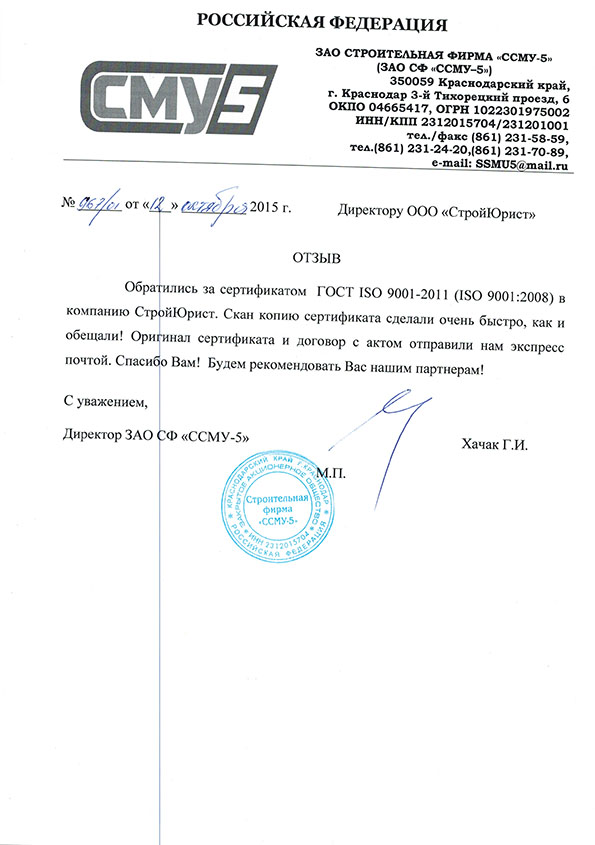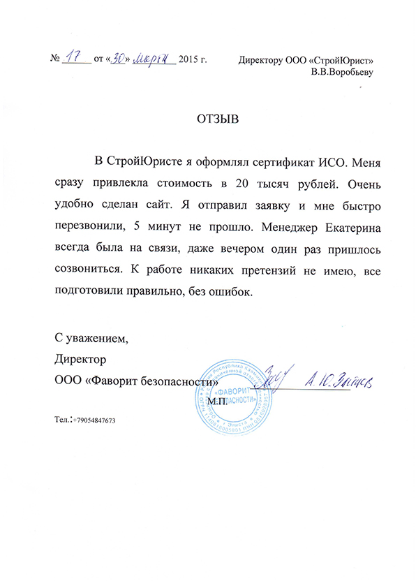 Отзывы клиентов "СтройЮрист" по ISO в Комсомольске-на-Амуре