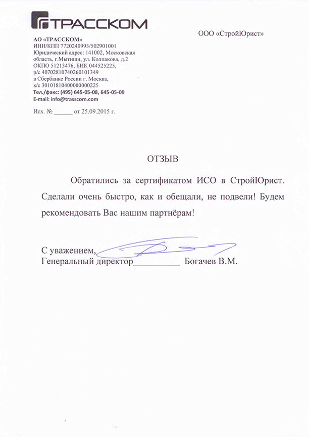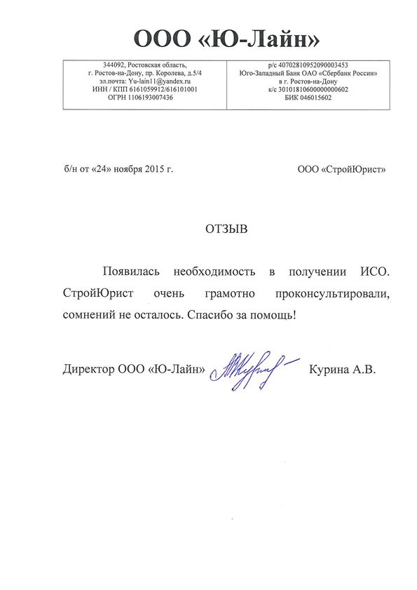 Отзывы клиентов "СтройЮрист" по ISO в Комсомольске-на-Амуре