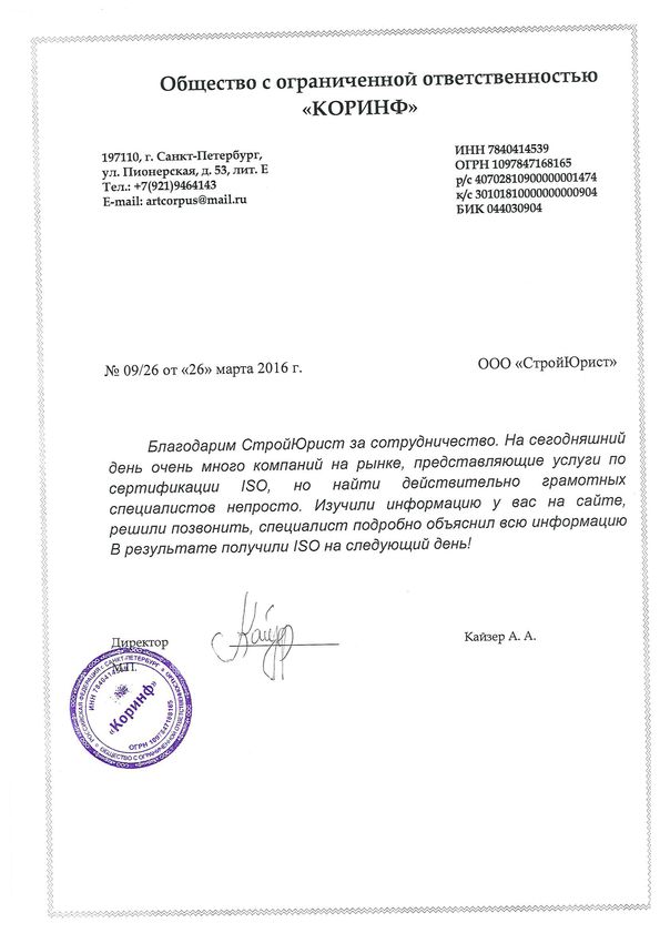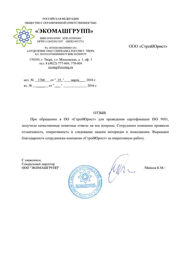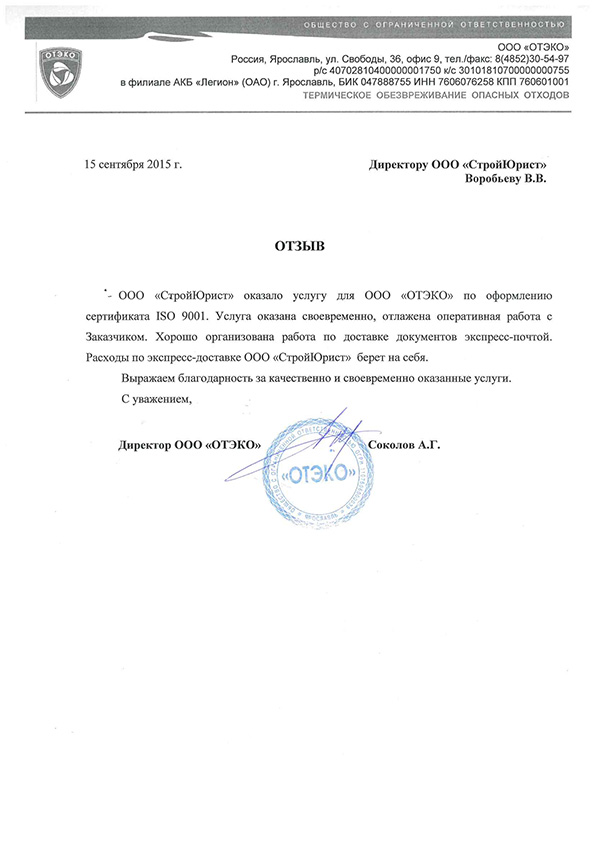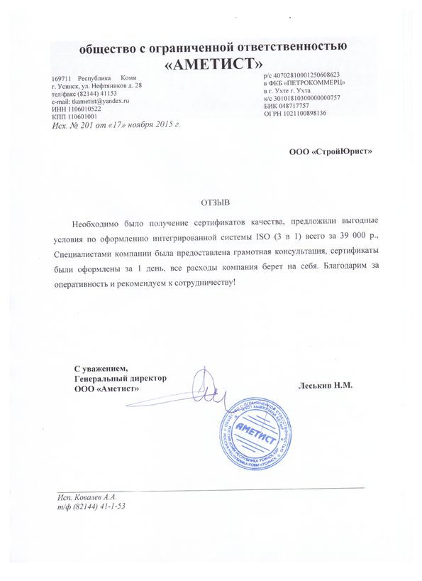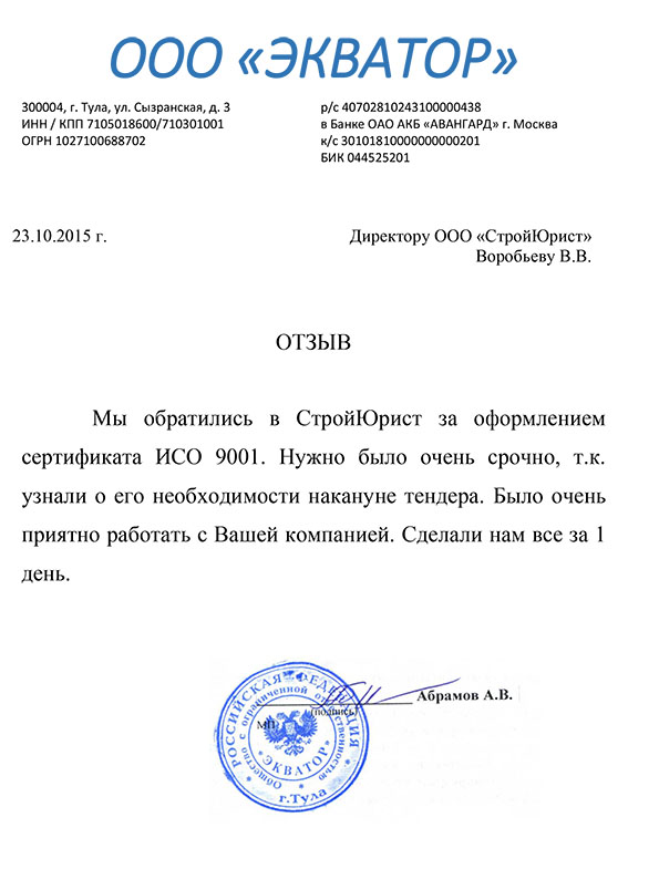 Отзывы клиентов "СтройЮрист" по ISO в Комсомольске-на-Амуре
