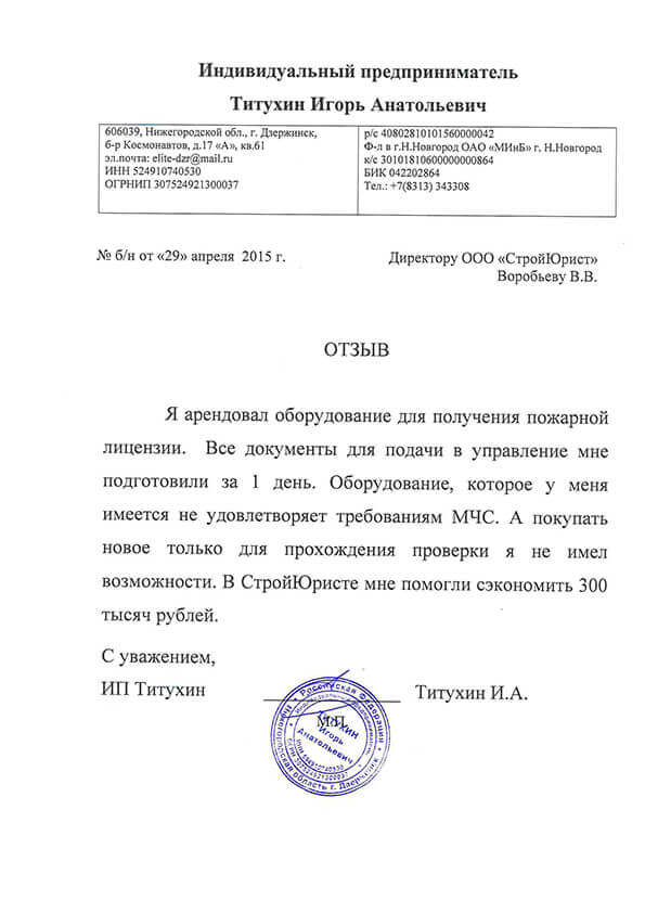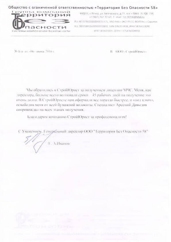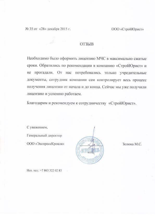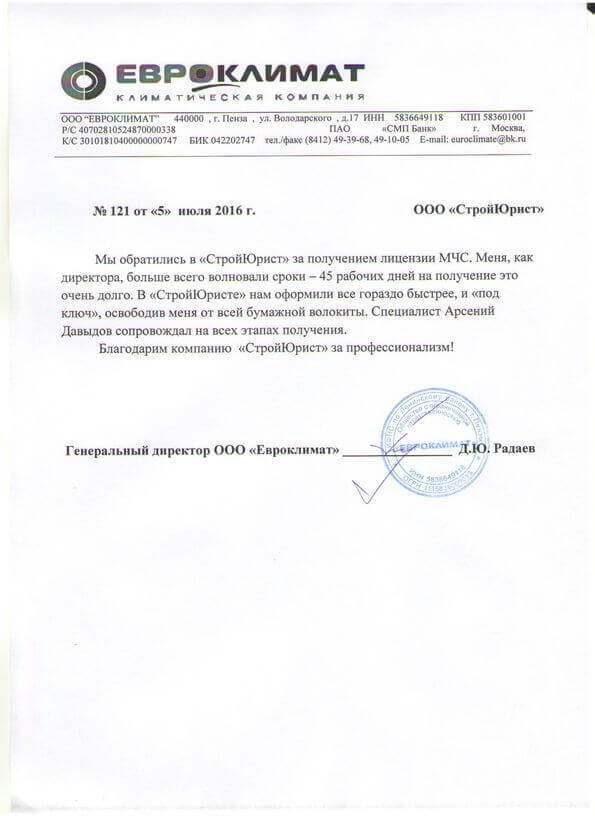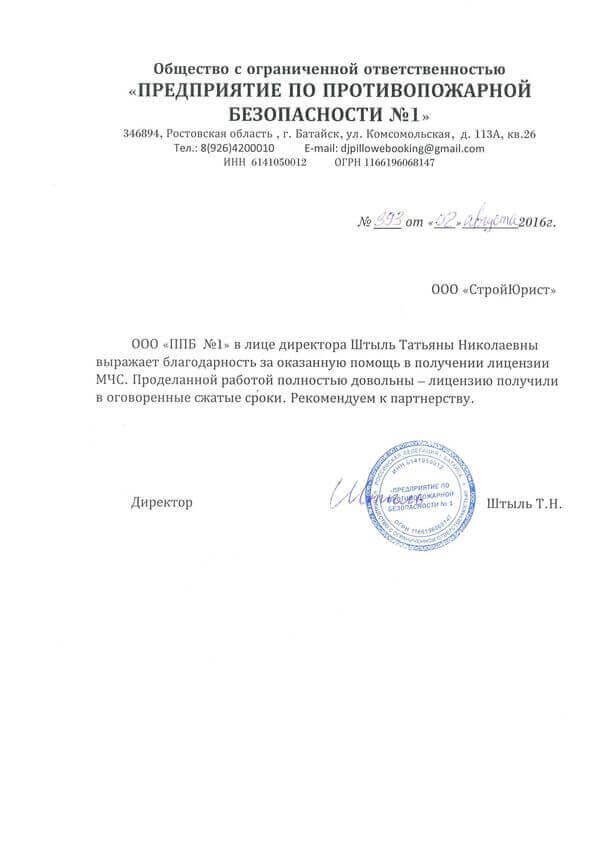 Отзывы клиентов "СтройЮрист" по лицензированию МЧС в Комсомольске-на-Амуре
