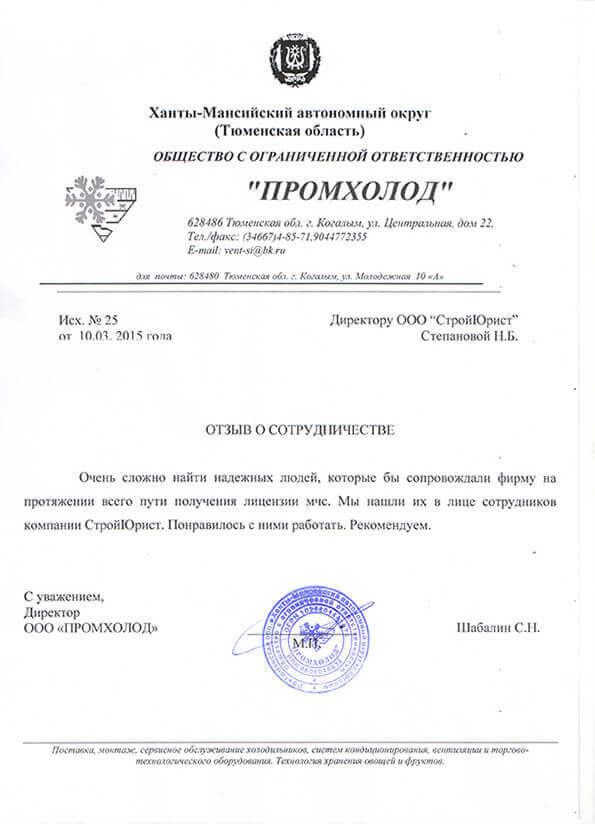 Отзывы клиентов "СтройЮрист" по лицензированию МЧС в Комсомольске-на-Амуре