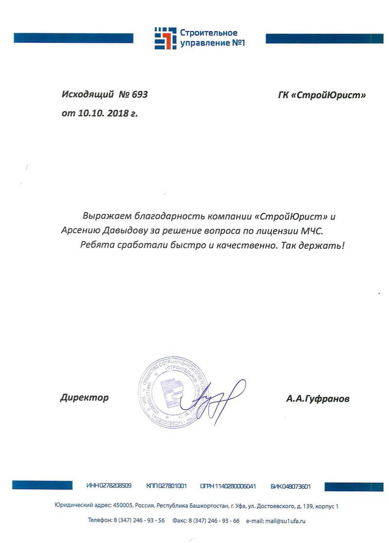 Отзывы клиентов "СтройЮрист" по лицензированию МЧС в Комсомольске-на-Амуре
