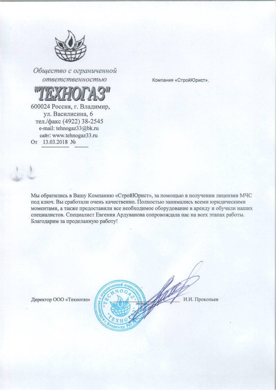 Отзывы клиентов "СтройЮрист" по лицензированию МЧС в Комсомольске-на-Амуре