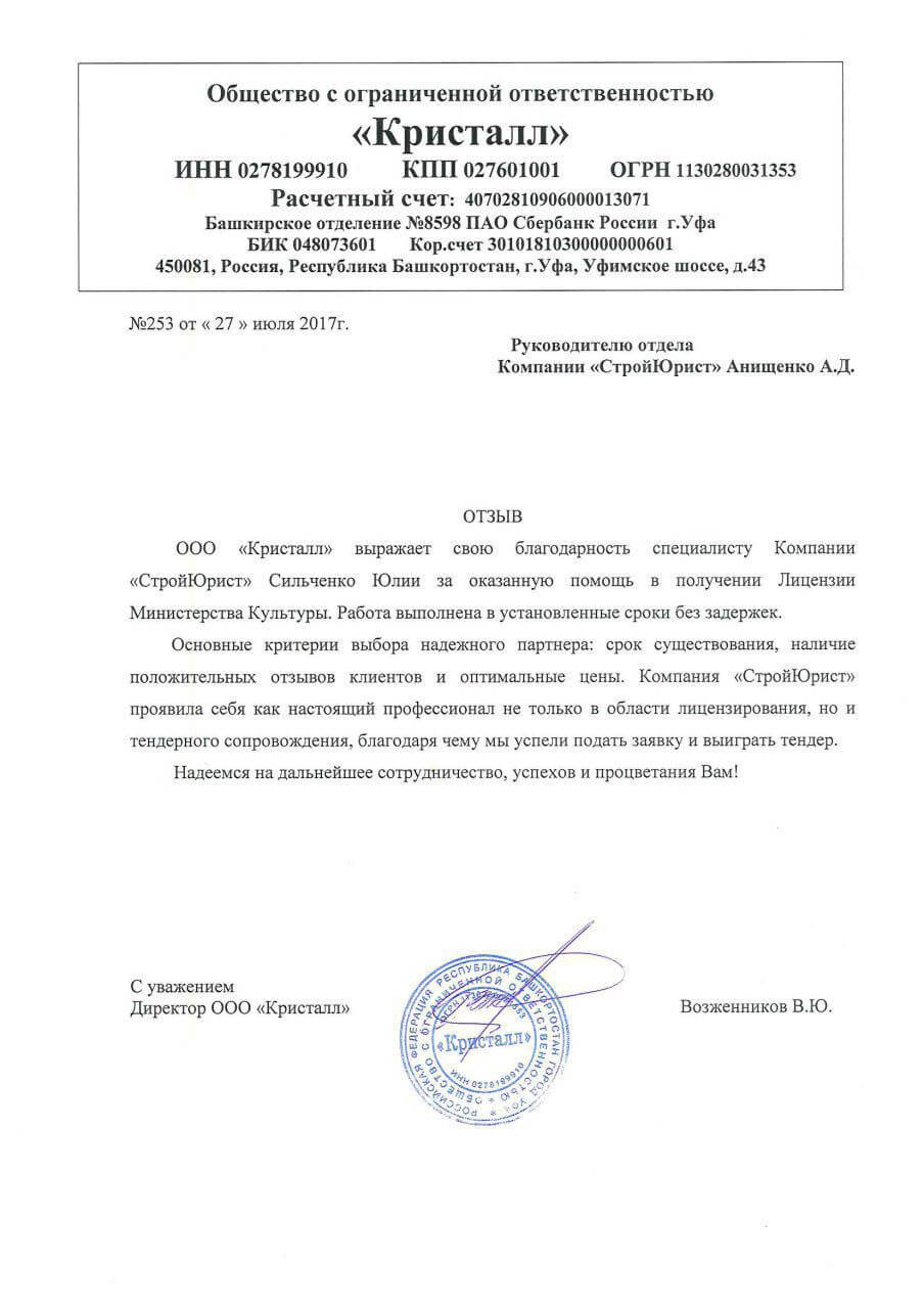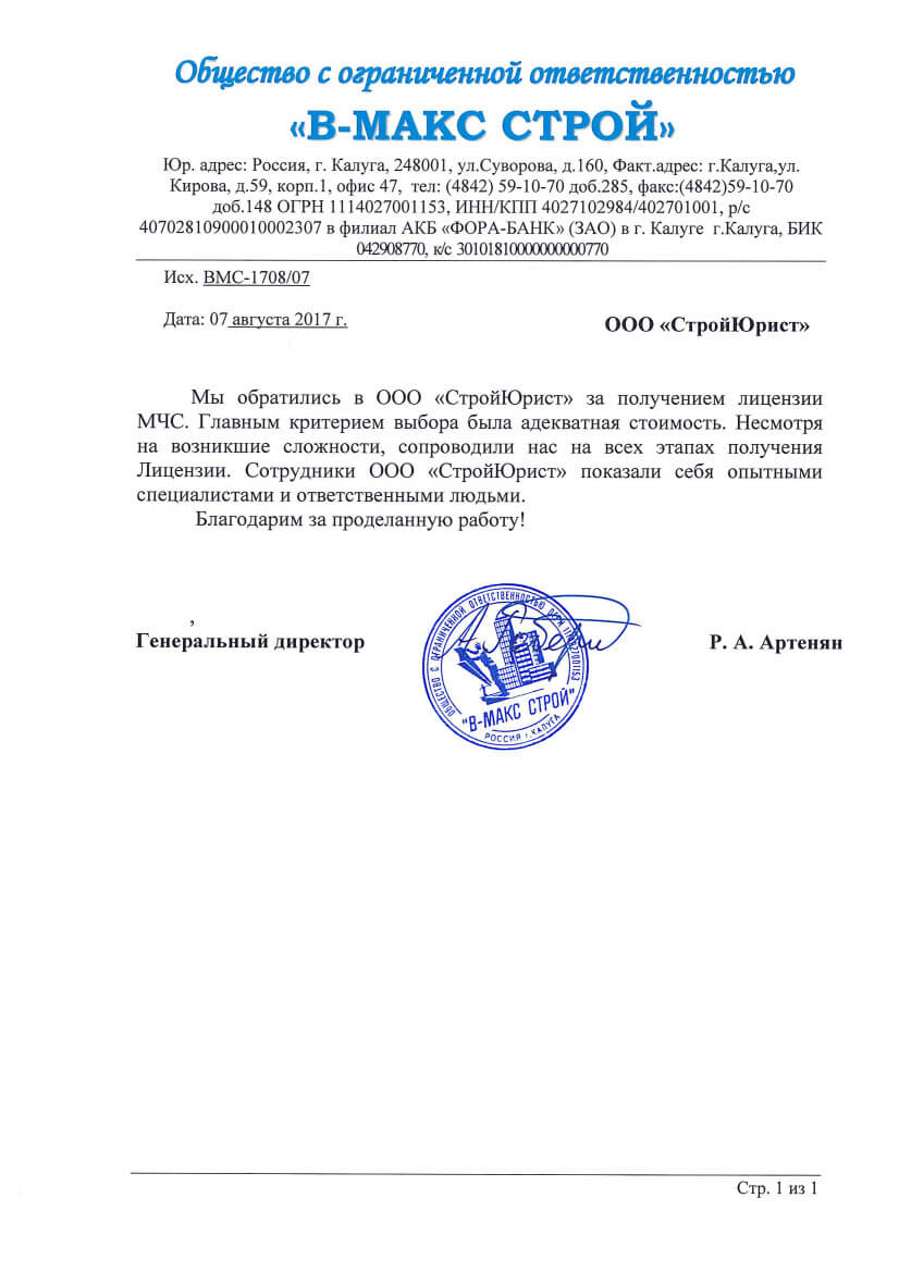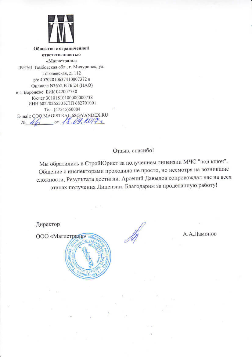 Отзывы клиентов "СтройЮрист" по лицензированию МЧС в Комсомольске-на-Амуре