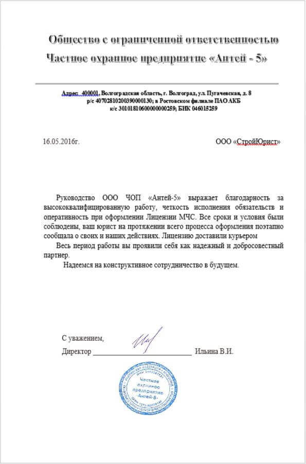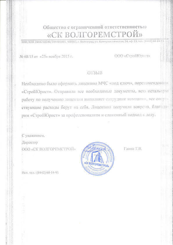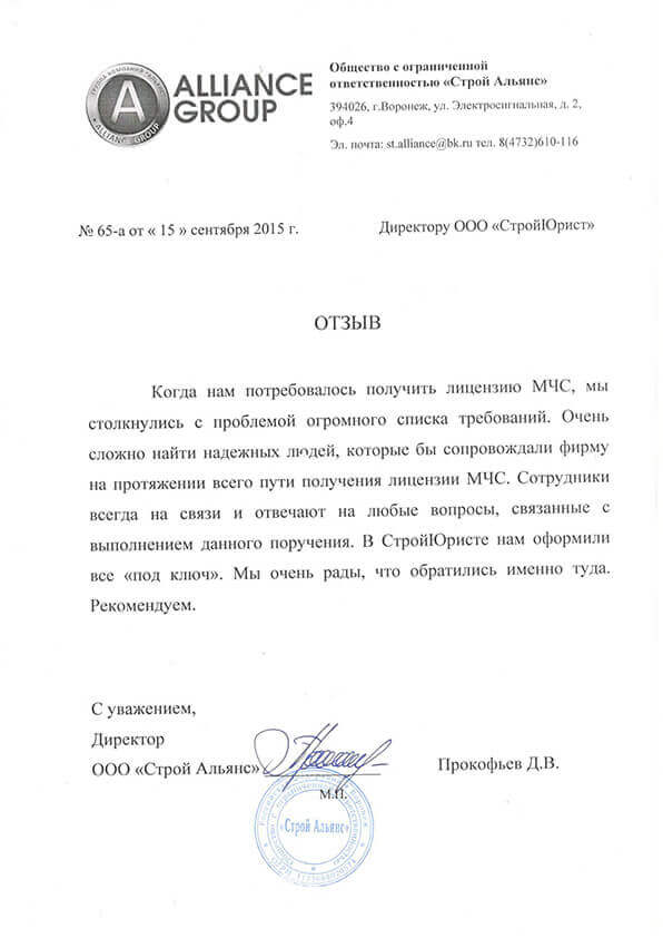 Отзывы клиентов "СтройЮрист" по лицензированию МЧС в Комсомольске-на-Амуре