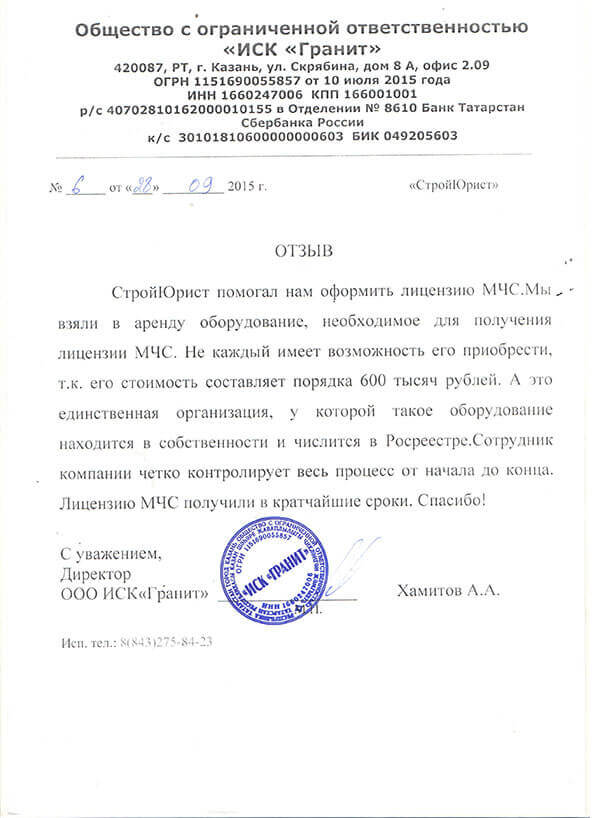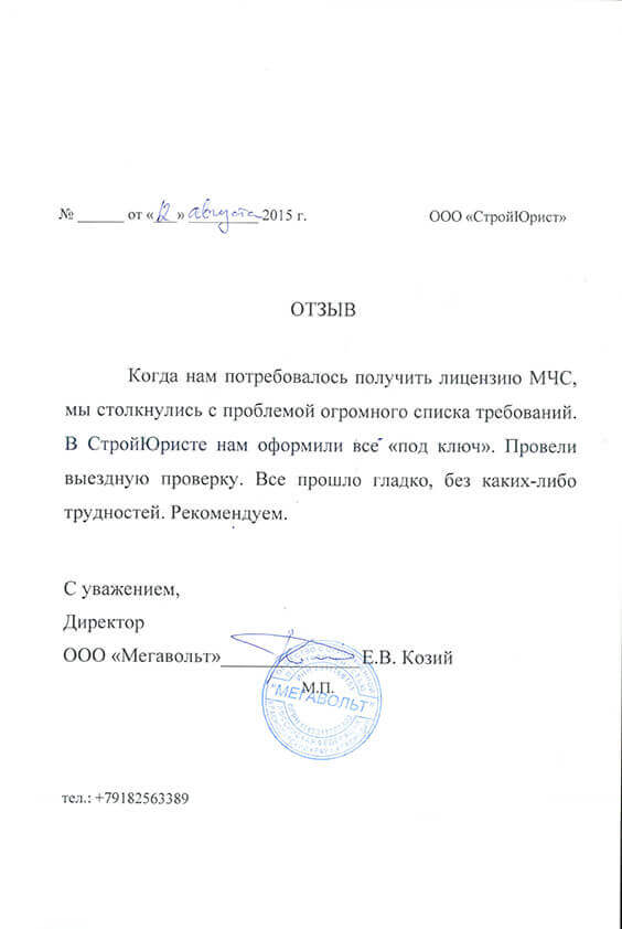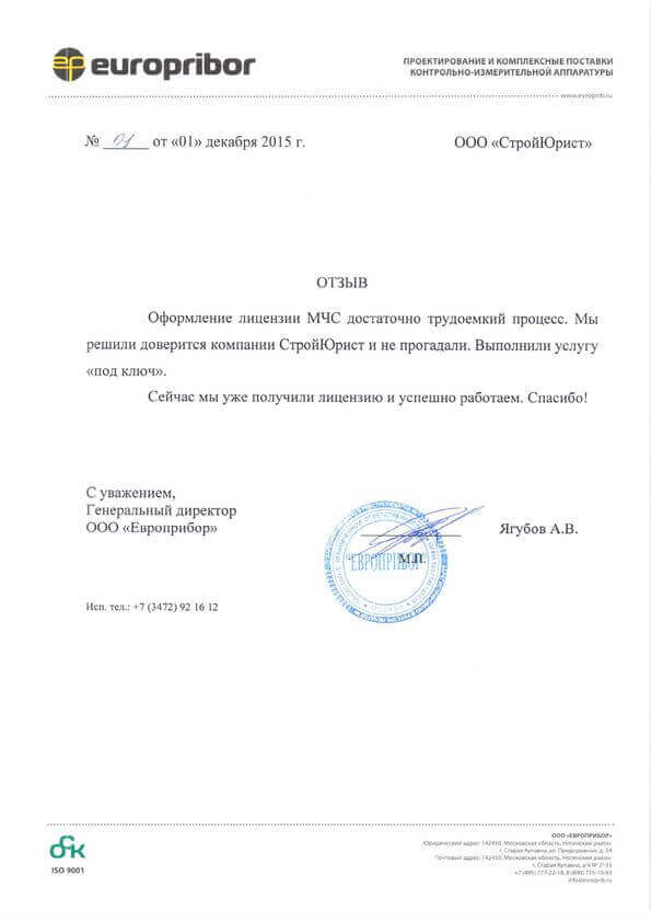 Отзывы клиентов "СтройЮрист" по лицензированию МЧС в Комсомольске-на-Амуре