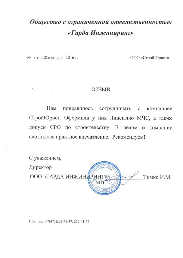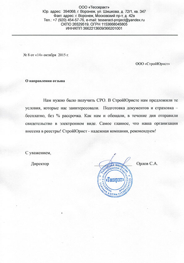 Отзывы клиентов "СтройЮрист" по вступлению в СРО в Комсомольске-на-Амуре