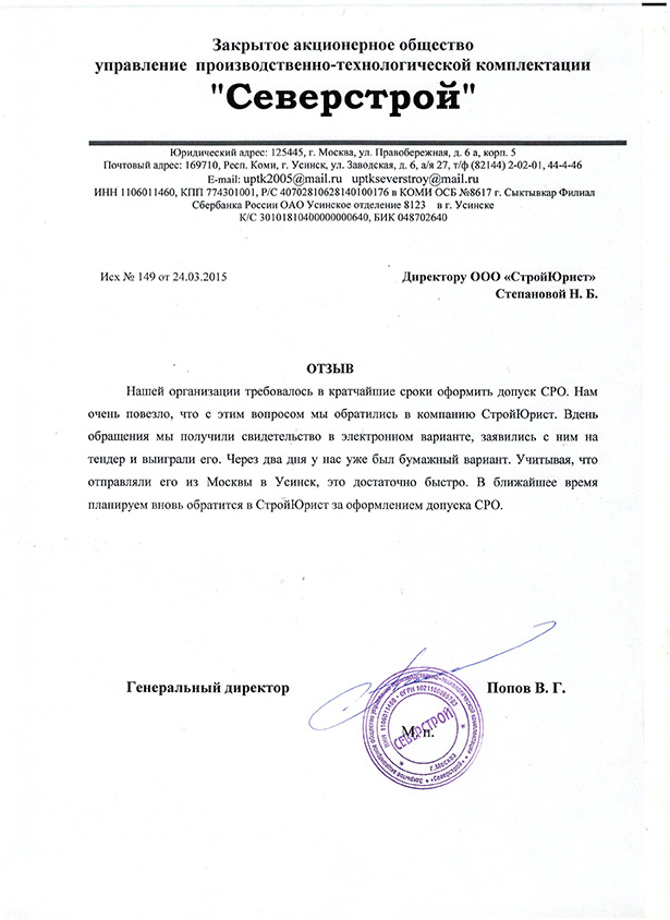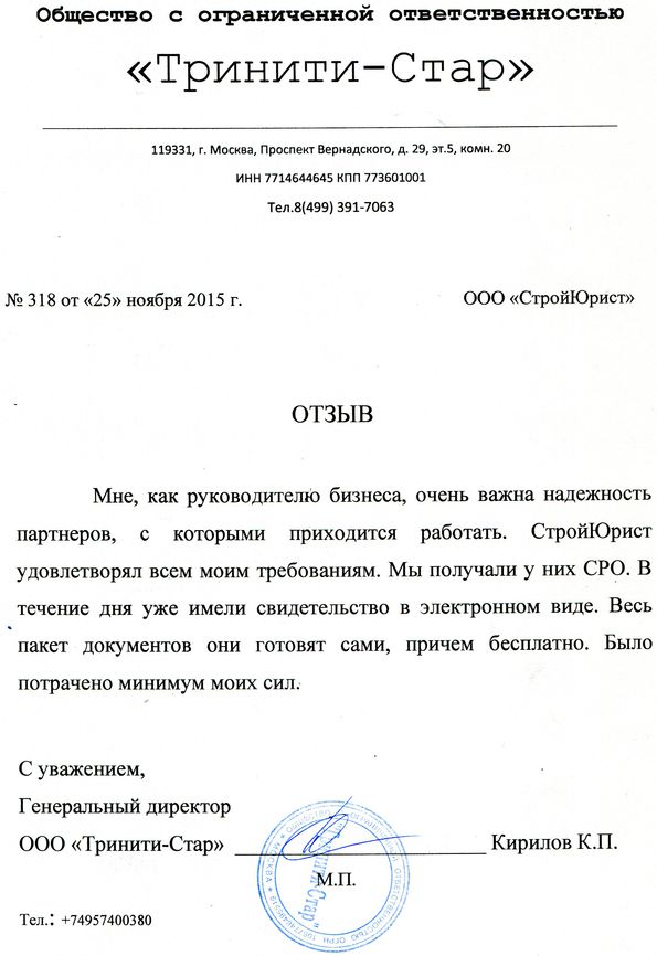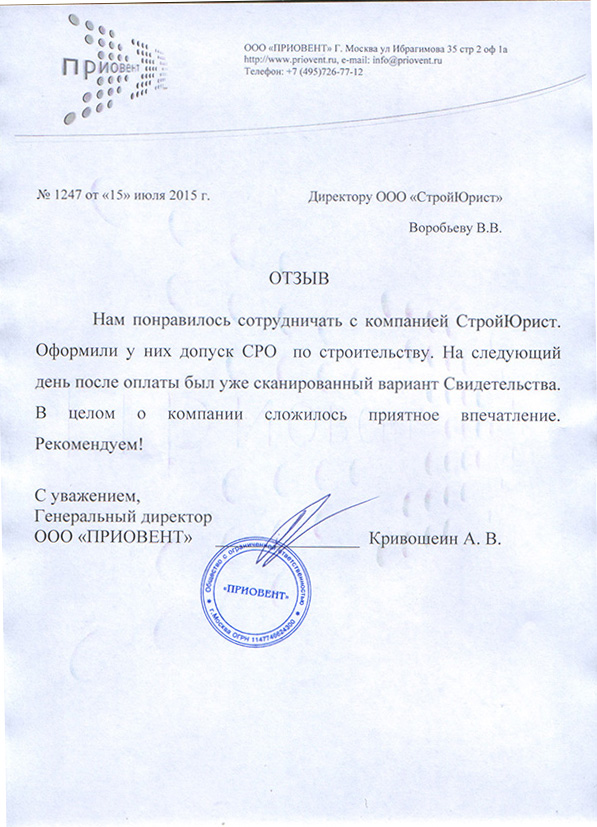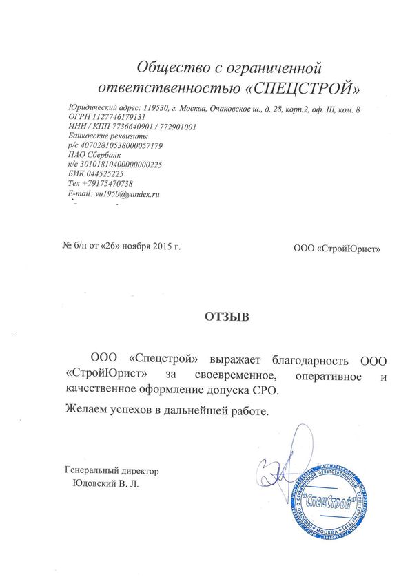 Отзывы клиентов "СтройЮрист" по вступлению в СРО в Комсомольске-на-Амуре