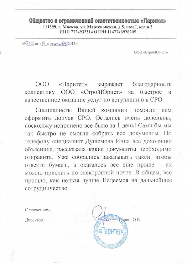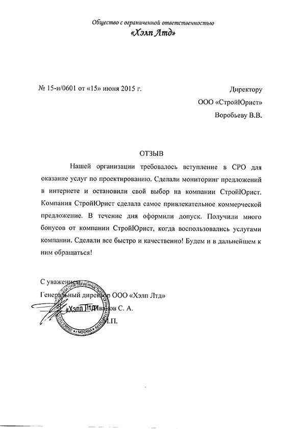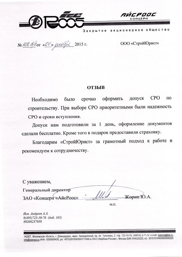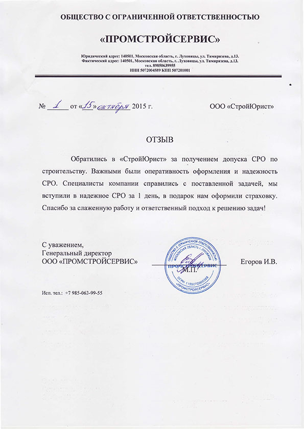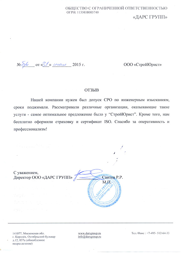 Отзывы клиентов "СтройЮрист" по вступлению в СРО в Комсомольске-на-Амуре
