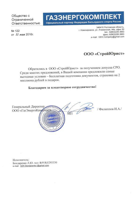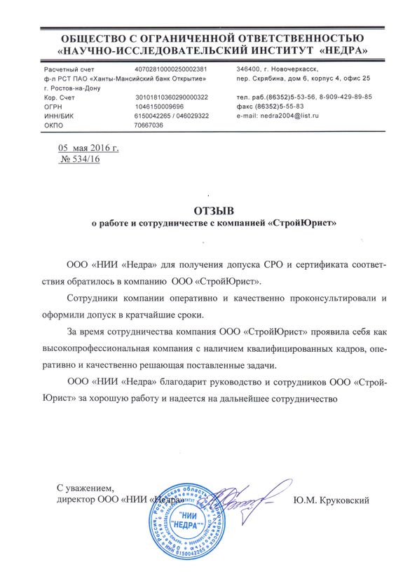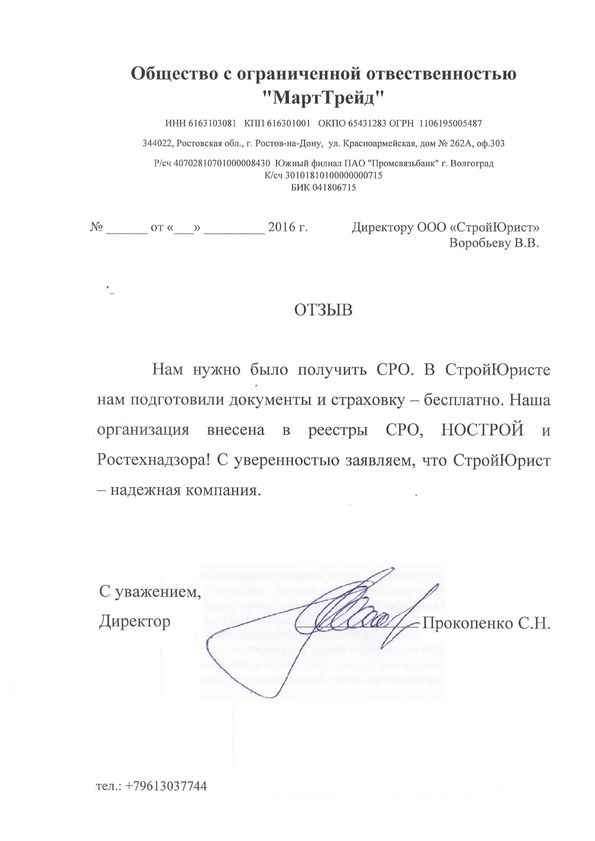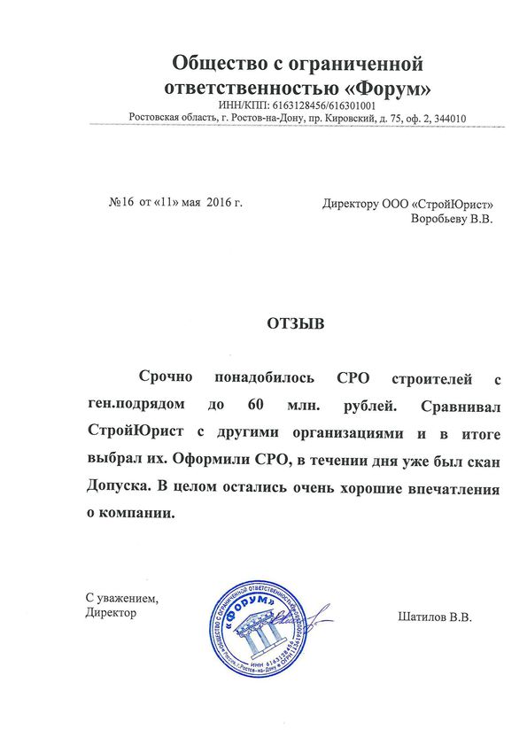 Отзывы клиентов "СтройЮрист" по вступлению в СРО в Комсомольске-на-Амуре