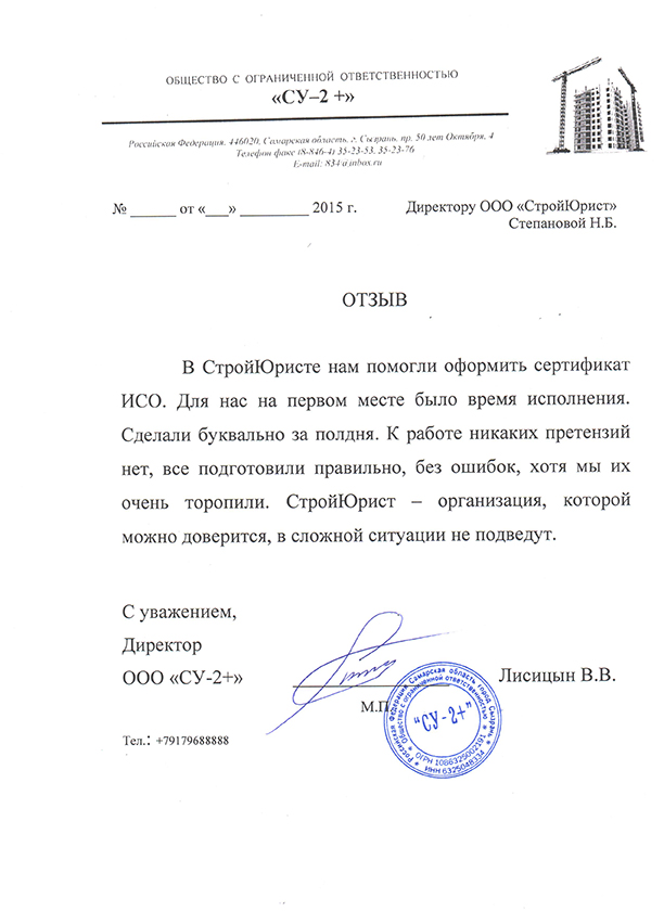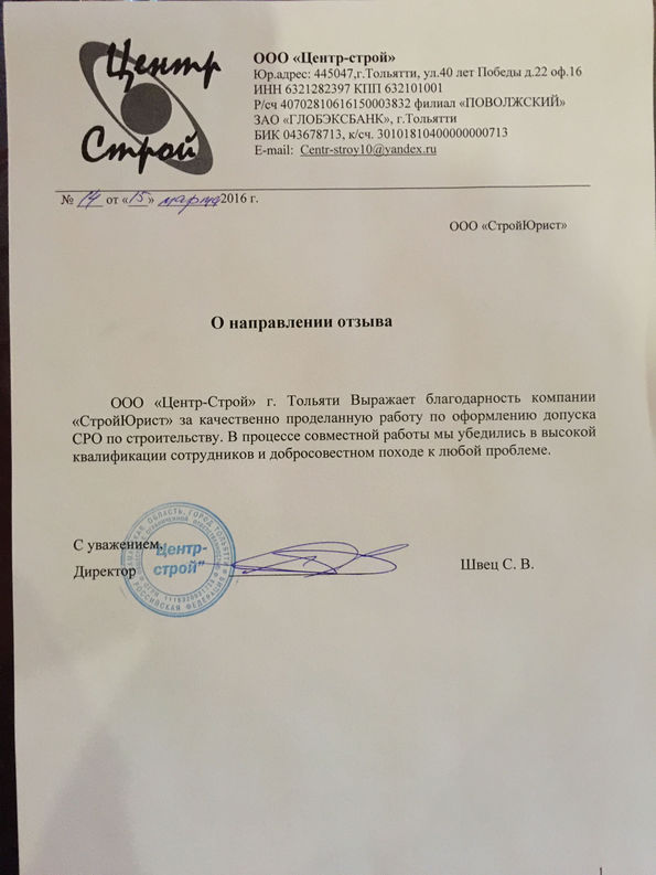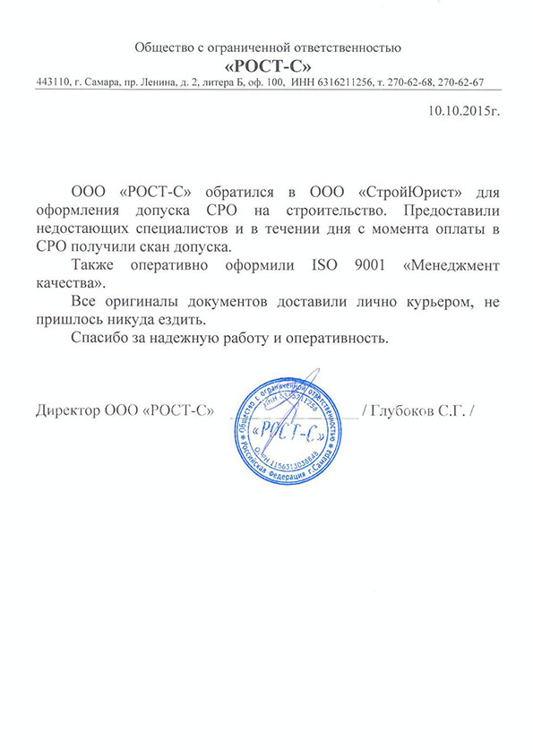 Отзывы клиентов "СтройЮрист" по вступлению в СРО в Комсомольске-на-Амуре