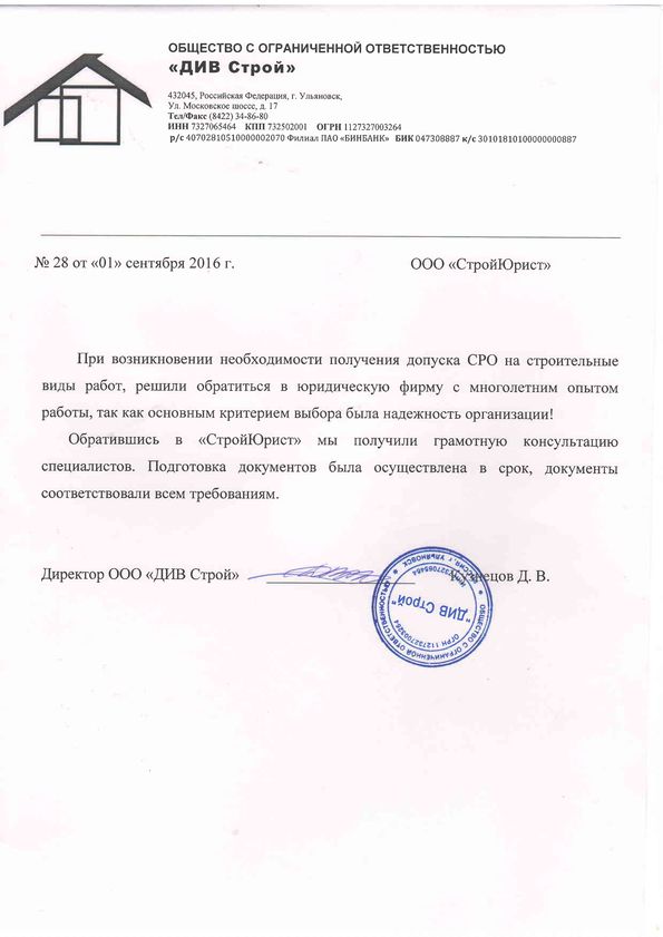 Отзывы клиентов "СтройЮрист" по вступлению в СРО в Комсомольске-на-Амуре