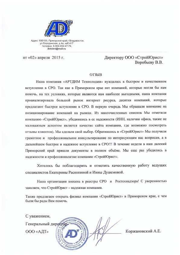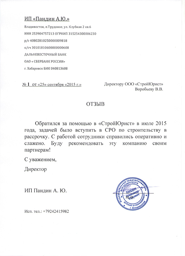 Отзывы клиентов "СтройЮрист" по вступлению в СРО в Комсомольске-на-Амуре