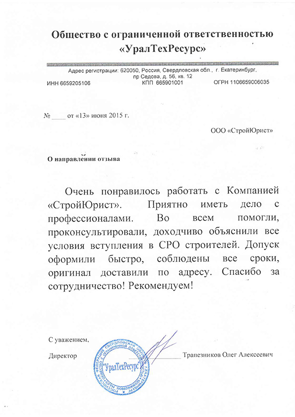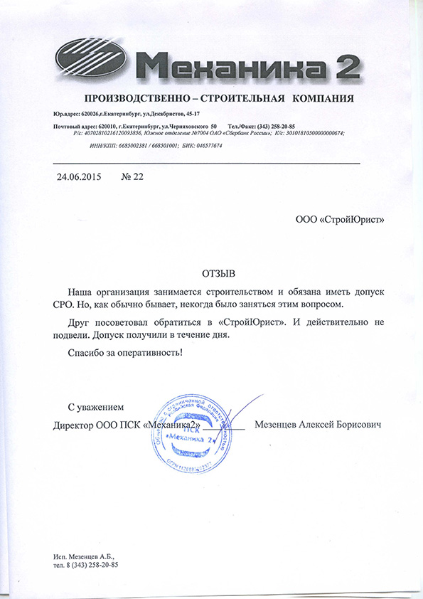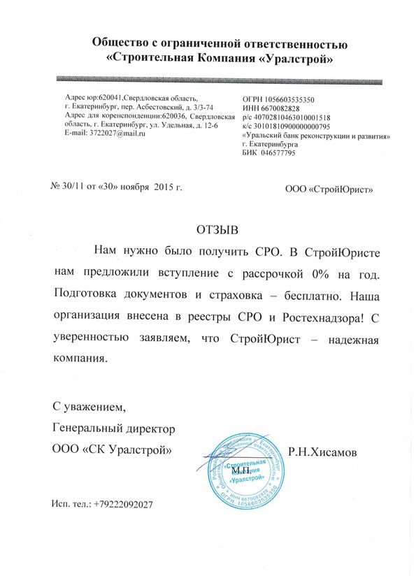 Отзывы клиентов "СтройЮрист" по вступлению в СРО в Комсомольске-на-Амуре