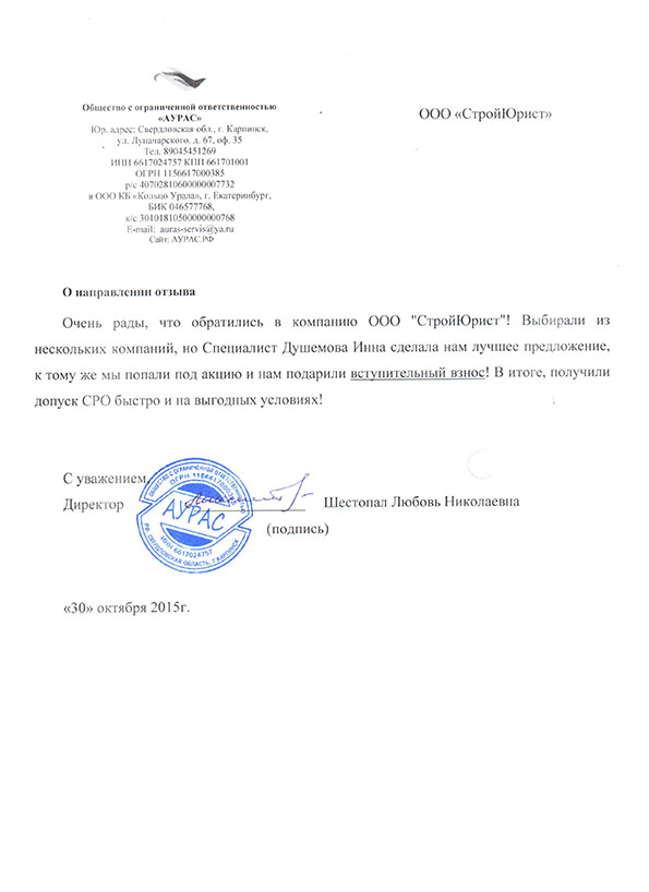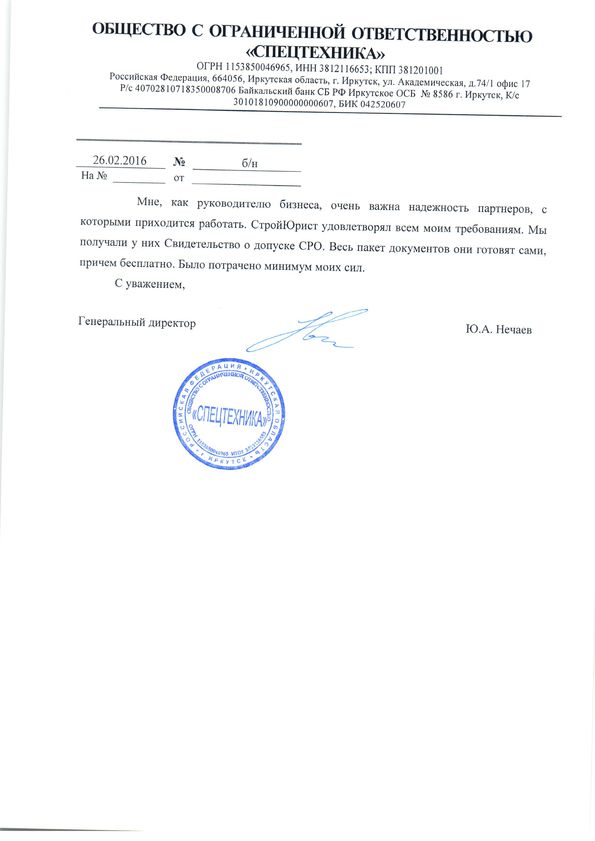 Отзывы клиентов "СтройЮрист" по вступлению в СРО в Комсомольске-на-Амуре