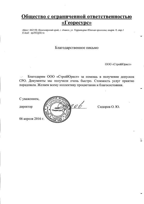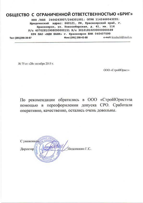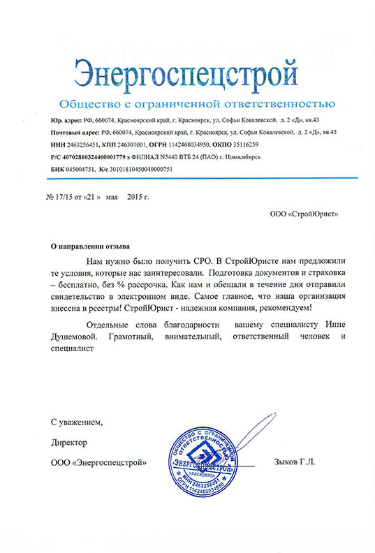 Отзывы клиентов "СтройЮрист" по вступлению в СРО в Комсомольске-на-Амуре