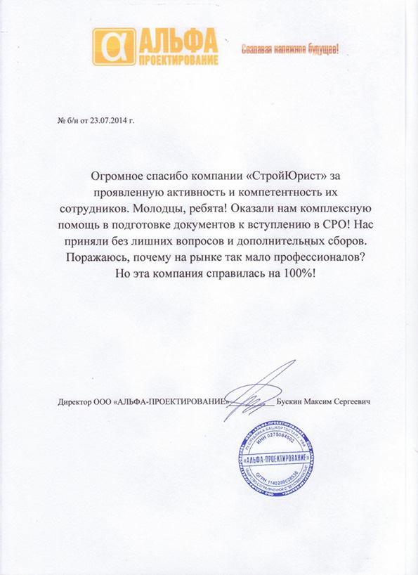Отзывы клиентов "СтройЮрист" по вступлению в СРО в Комсомольске-на-Амуре