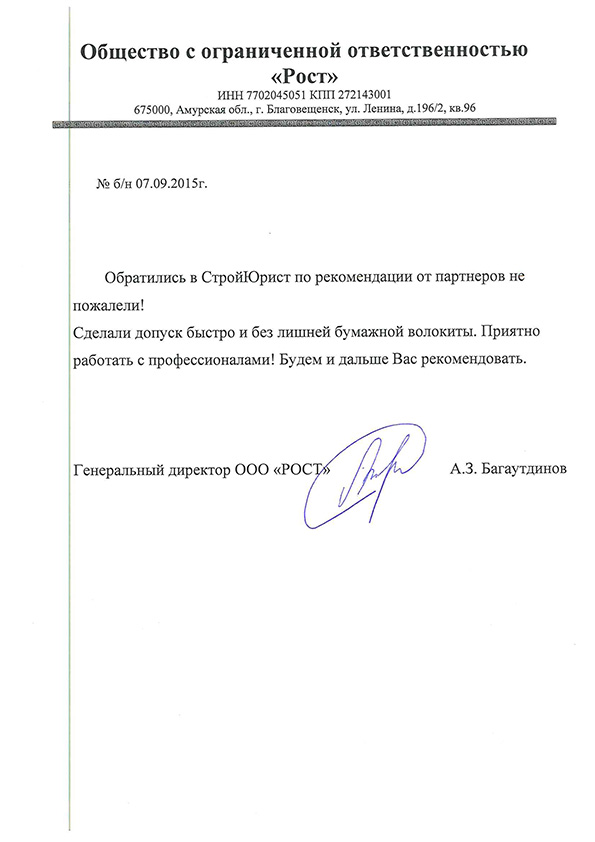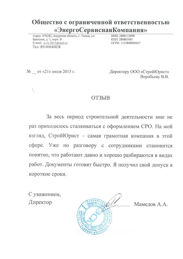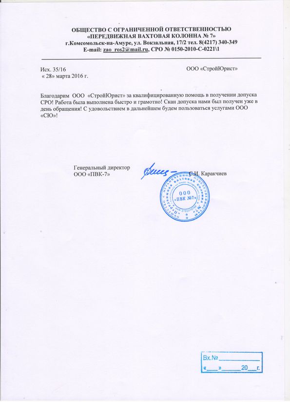 Отзывы клиентов "СтройЮрист" по вступлению в СРО в Комсомольске-на-Амуре