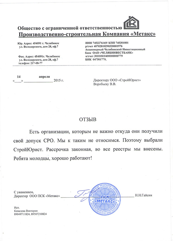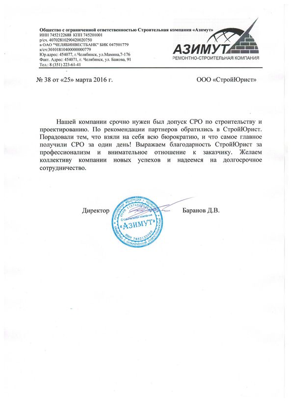 Отзывы клиентов "СтройЮрист" по вступлению в СРО в Комсомольске-на-Амуре