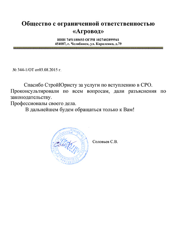 Отзывы клиентов "СтройЮрист" по вступлению в СРО в Комсомольске-на-Амуре