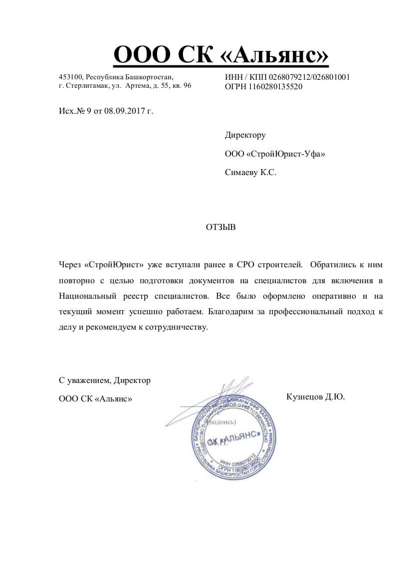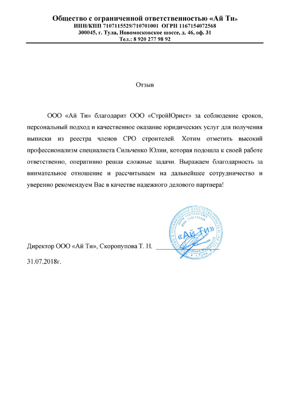 Отзывы клиентов "СтройЮрист" по вступлению в СРО в Комсомольске-на-Амуре